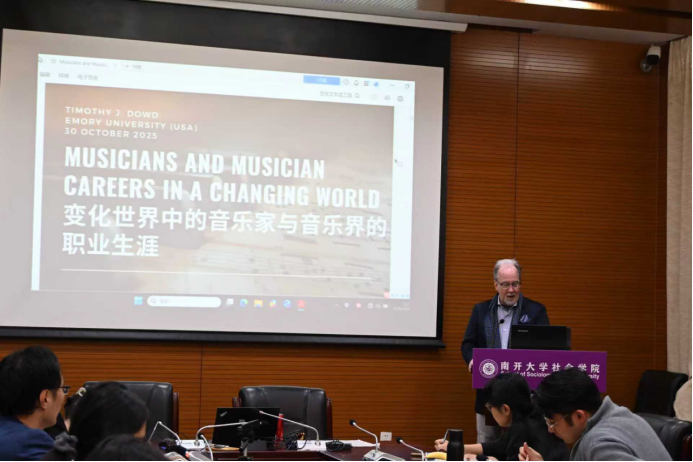 第三项活动是由Dowd教授主讲,题目为“变化世界中的音乐家与音乐界的职业生涯(Musicians and Music Careers in a Changing World)”的讲座,于10月30日中午12:10-13:50在新2网址