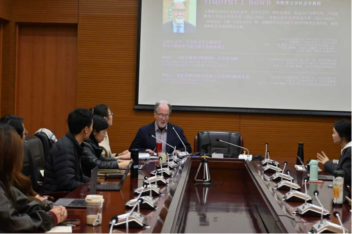 第二项学术活动是由Dowd教授主讲,题目为“文化全球化中的组织:以音乐为例(The Organization of Cultural Globalization: Lessons from Music)”的讲座,于10月28日下午16:00-18:00在新2网址