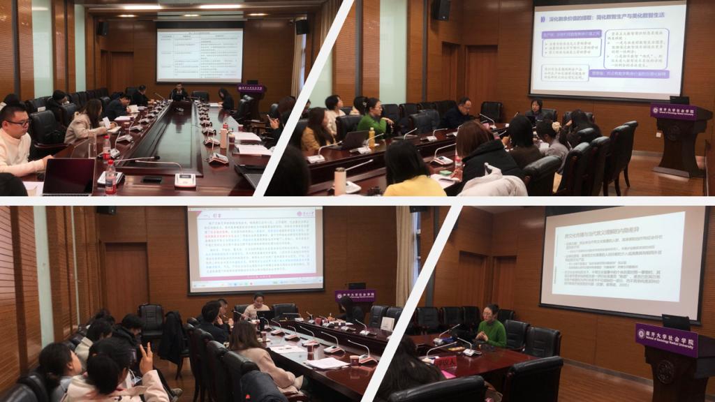 王旭光教授担任评议人。发言人包括南开大学朱婷钰副教授、于佳煖博士,天津理工大学刘振副教授、硕士研究生庞淑睿、周晴、张怡、韩越,天津师范大学研究生董亚楠、张淑婷等,围绕人工智能伦理、生育意愿、贫困治理等议题展开研讨。