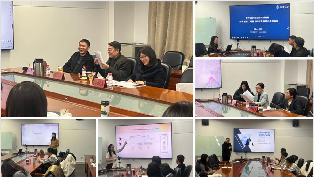 王光荣研究员评议。河北工业大学文太林副教授、檀若楠同学,天津理工大学徐立娟博士、硕士研究生韩文婕、刘宇晨、宋彦霖、王艺颖、籍馨暄,中国民航大学裴一凡同学等进行了发言,分享了社保政策、数字赋能乡村文旅、新业态女性农民工赋能等研究成果。