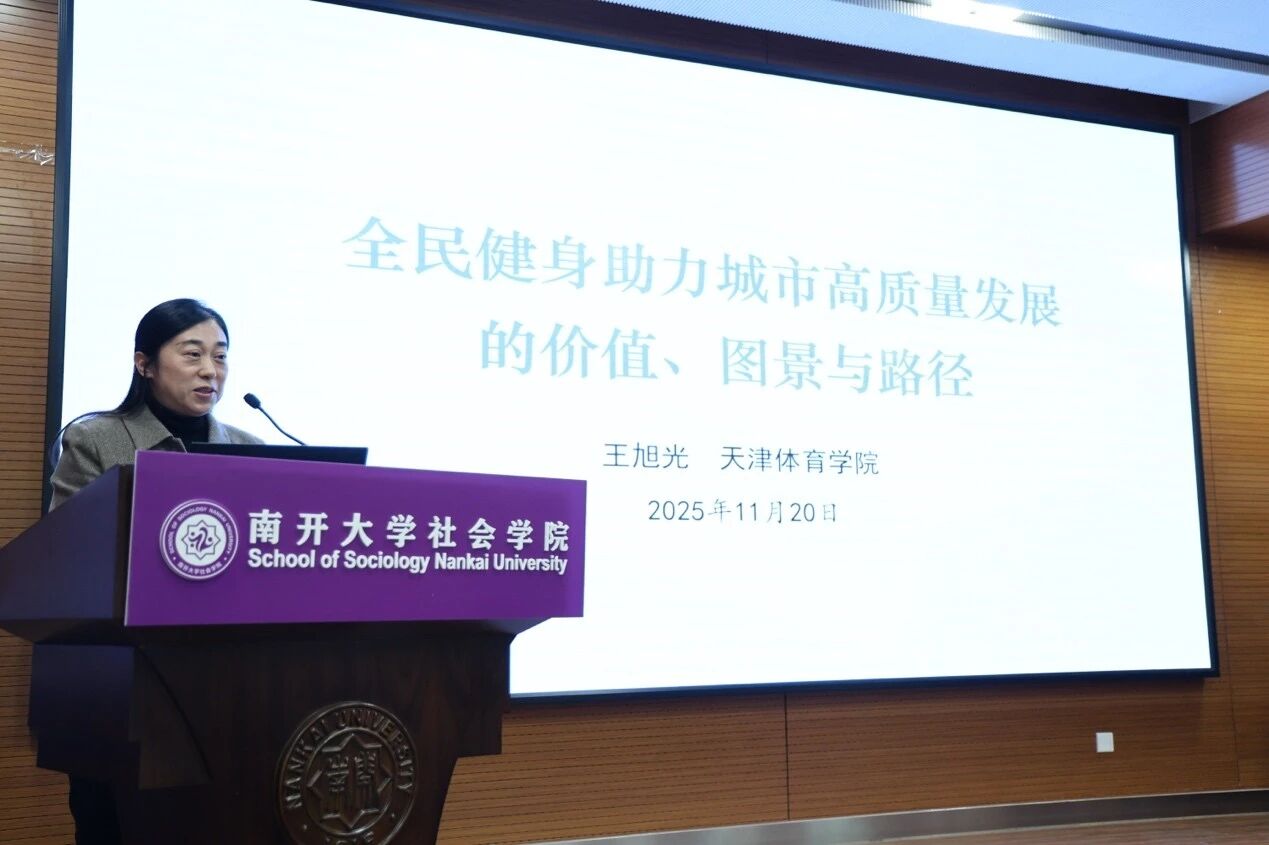 王旭光教授围绕“全民健身助力城市高质量发展”,阐释全民健身在化解社会矛盾、优化经济结构等方面的多元价值,构建发展图景,提出政策引领、目标导向等实践路径。