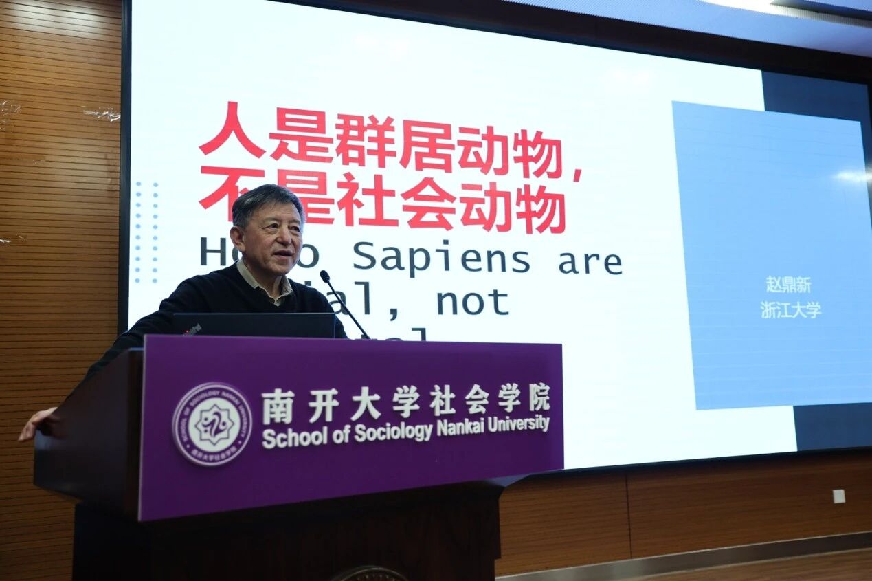 浙江大学人文高等研究院院长赵鼎新教授以“人是群居动物不是社会动物”为题,从“社会学”译名争议切入,主张将sociology理解为“群学”以保持对社会现象的批判性,回归人类群居动物本质。他还分析了中国特色因果关系中的末梢重现象,并梳理墨子、老子等传统思想中缓解社会张力的方案,为社会学研究提供新视角。