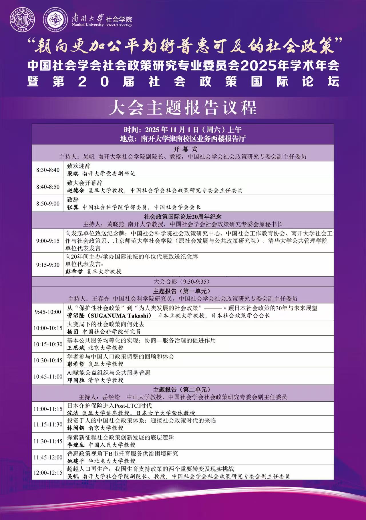 中国社会学会社会政策研究专业委员会2025年学术年会暨第20届社会政策国际论坛